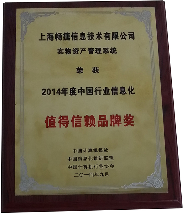 上海畅捷获“2014年度中国行业信息化值得信赖品